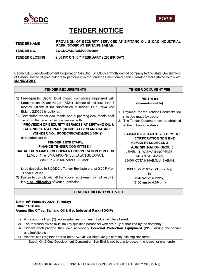 PROVISION OF SECURITY SERVICES AT SIPITANG OIL & GAS INDUSTRIAL PARK (SOGIP) AT SIPITANG SABAH